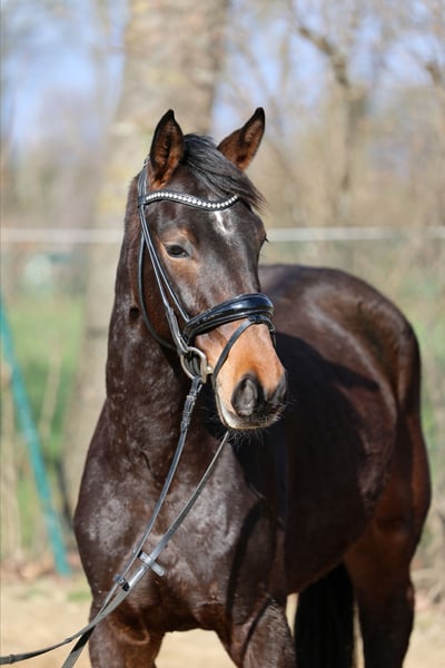 Gerade dreijährig und noch voll entwickelt so präsentiert sich diese junge Nachwuchsstute. Bei ersten Schritten in der Arbeit begeisterte sie durch ihre unkomplizierte und einfache Art. Ein ehrlicher und unerschrockener Charakter bei bester Arbeitseinstellung. Diese Qualität kommt nicht von ungefähr, so stammt Vater Extra Gold aus weltbekannten und so erfolgreichen Linie der Weihegold. Er selbst war gefeierter Siegerhengst der Körung in Münster. Mütterlicherseits folgt der Stamm der Familie Pape aus Hemmoor. Jüngster Erfolgsspross dieser Linie ist Endorphin FRH, Bronze Medaillengewinner auf der weltmeisterlichen Bühne in Verden. Nach seinen Erfolgen auf dem Bundeschampionaten 2023 und 2024, wo er zweimal Vizebundeschampion wurde, knüpft er nun an seine Erfolge an und setzt seine exzellente Laufbahn in den Jungpferdeprüfungen fort. Diese Linie brachte neben zahlreichen internationalen Sportpferden mit dem gekörten Regazzoni und Donnerwerther auch einen deutschen Vizebundeschampion und einen englischen Bundeschampion hervor. Video auf Anfrage. Im Züchterauftrag wegen Bestandsreduzierung. Gute Röntgenbilder liegen vor.