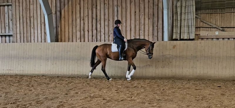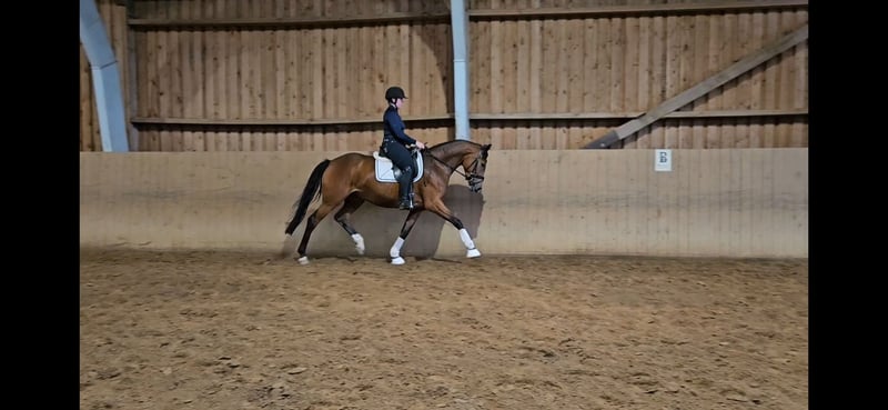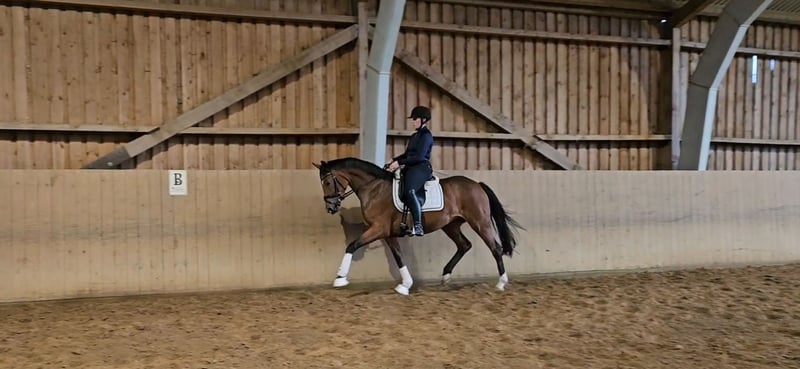 Santa-Luzia ist eine schicke und besonders leichtrittige 3 jähr. Dressurstute. Diese charmante Stute überzeugt mit drei guten Grundgangarten und ist stets brav unterm Sattel. Sie zeigt sich lernwillig und ist auch im täglichen Umgang eine super liebe Sportskameradin. Mit einer Größe von 1,68m ein ideales Damen- u. Umsteigerpferd. Sie ist schmiede- u. verladefromm, herdenverträglich. Top TÜV vorhanden. Standort: 27432 Basdahl Nähere Informationen und Termin zum ausprobieren bitte direkt per Anruf unter: 01520/3178971