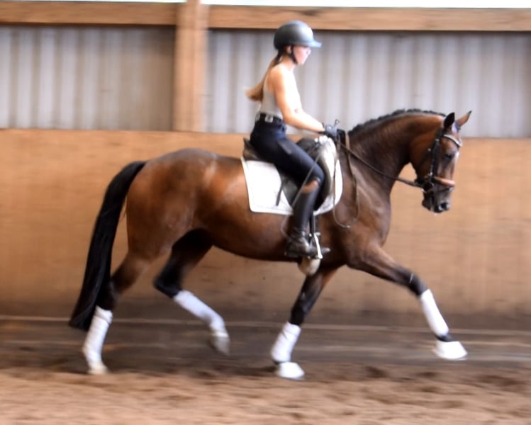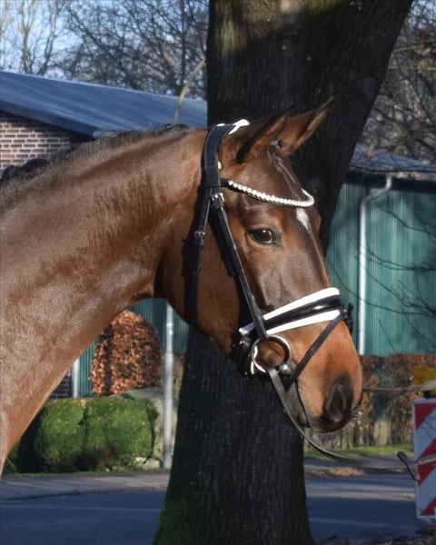 Eine Tänzerin die man selten findet! Wunderschöne, ausdrucksstarke Stute ausgestattet mit sehr raumgreiffenden Schritt, eine bergauf Gallope und Trab mit sehr aktiven Hinterbein und Versammlungsbereitschaft . Vajana hat tollen Charakter und ist sehr leichtrittig und lernbereit. Ein Pferd, das sich toll ausbilden lässt. Sie ist wie geschaffen sowohl für den anspruchsvollen Dressursport als auch für Amateurreiter. Sie ist altersentsprechend sehr gut ausgebildet und auf dem Weg zu Dressurpferde -A-. Vajana wird in der Halle und auf dem Aussenplatz geritten und präsentiert sich dort absolut unkompliziert. Sie kennt auch Gelassenheitstraning und löst alle Aufgaben vorbildlich. Sie ist z.Z. 164 cm und im Wachstum. Durch ihren sehr korrektem Exterieur, gut angesetztem Hals wirkt sie unter dem Reiter größer und deckt auch größer Reiter sehr gut ab. Probereiten jederzeit nach Absprache möglich. Mehr Infos finden Sie auf unserer Homepage. Hof Heisterbusch Team.