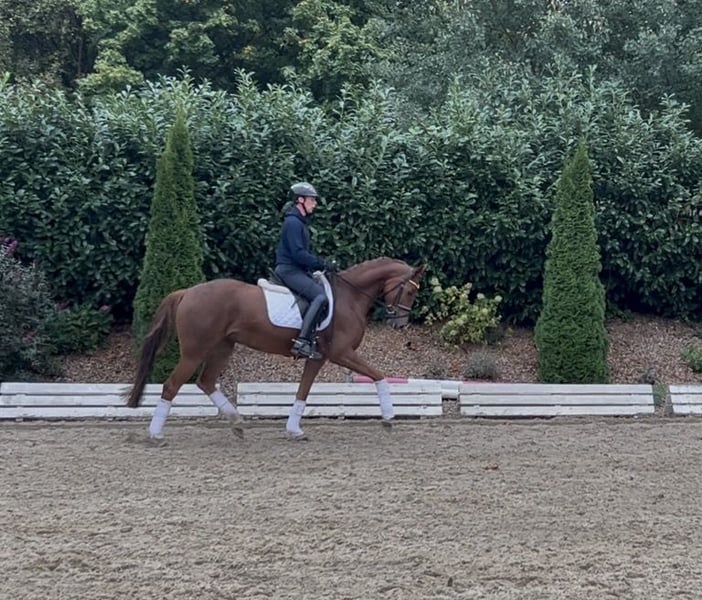 For sale is a beautiful 4-year-old Hanoverian mare with excellent prospects for a successful future in sport, leisure, or breeding. This young lady impresses with three good basic gaits, an active hind leg, as well as a lot of elasticity and impulsion. She always presents herself as eager to learn, strong-minded, and with a positive work attitude. She is currently in professional training and is developing further every day. X-rays are available with no findings and can be viewed upon serious interest. A meeting can be arranged at any time by appointment.