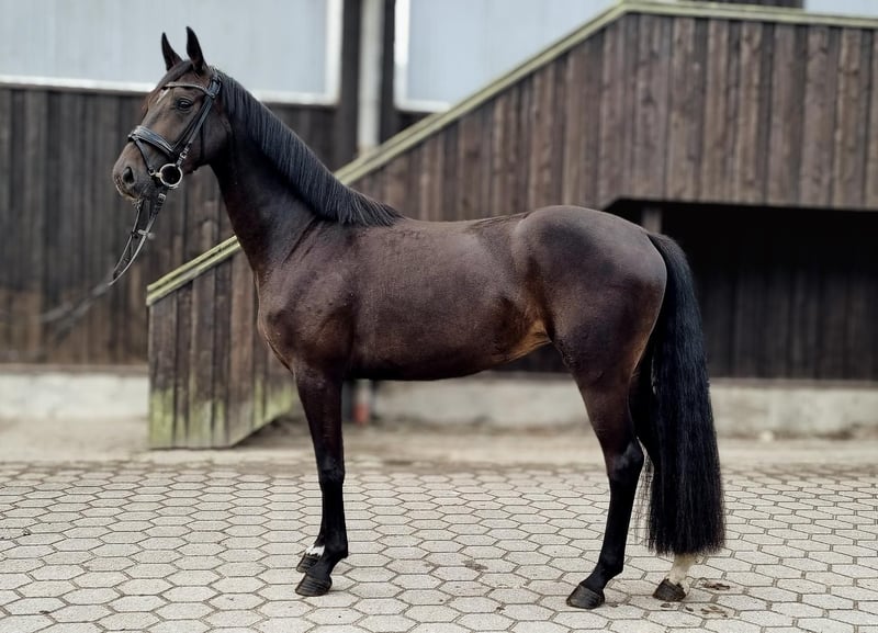 Zum Verkauf steht eine ansprechende, dunkelbraune 4-jährige Stute, die sich aktuell in der Ausbildung befindet. Sie überzeugt durch ihre elegante Erscheinung und ihre aufmerksame, sensible Art. Die Stute ist dem Alter entsprechend gut angeritten und zeigt sich lernwillig sowie motiviert bei der Arbeit. Sie verfügt über eine gute Grundqualität und bringt viel Entwicklungspotenzial für die weitere Ausbildung mit. Aufgrund ihres sensiblen und teilweise schreckhaften Wesens ist sie nicht für Anfänger geeignet. Sie benötigt einen erfahrenen Reiter, der ihr Sicherheit vermittelt und sie weiter fördert. In den richtigen Händen kann sie sich zu einem zuverlässigen und leistungsbereiten Partner entwickeln. Ein interessantes Pferd für ambitionierte Reiter, die Freude daran haben, ein junges Pferd weiter auszubilden. Bei Interesse gerne melden für weitere Informationen oder ein Probereiten.