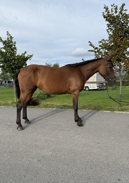 We are offering a friendly, gentle, and brave mare perfect for dressage, showjumping, trail riding, or eventing. All-rounder. 📝 Age: 4 years 📏 Height: 165 cm at withers 🦶 Trained for farrier, negative Coggins test She knows the basics of horsemanship, building trust and respect with calm and consistent signals. Transport is no problem. She is capable of small show jumping, training with children, and is great for leisure riding or sport. No fear, if you send a message via WhatsApp on the number +386 51 214 912, you can get videos.