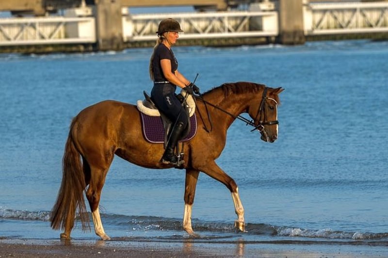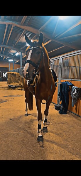 * V.: Rotspon x Donnerball - Donnerhall, Rosenkavalier, Florestan I, Rubinstein I, Weltmeyer, Focus… * 2021 geboren * Stute * zur Zeit 1,68m Stockmaß * Herdenvertraglich * Verladefromm * Schmiedefromm * von 15j. Jugendlicher geritten * im Gelände artig * unerschrocken * Würzburg * Transport gegen Aufpreis möglich * Beritt möglich * Große AKU für ca. 800,- * im Auftrag Diese Stute ist ein richtiger Hingucker. Totschick im schönen Dunkelfuchs Lack, mit einer herrlichen Aufmachung. Super artig im Umgang, lässt alles mit sich machen und ist sehr aufgeschlossen, freundlich und immer interessiert. Beim Reiten sehr angenehm zu sitzen. Gleicht einem Sofa. Sie ist sehr harmonisch zu reiten für die kurze Zeit unterm Sattel. Im großen und Ganzen ein unfassbar schönes Reitgefühl. Das Go muss sie noch ein bisschen üben. Der Schritt ist wirklich sehr gut, im Galopp zeigt sie immer wieder eine schöne Bergauf Tendenz. Es wird aber kontinuierlich besser. Sie wurde schon von einer 15 j. Jugendlicher geritten und war schon ganz brav alleine und in der Gruppe im Gelände. Es werden nur ordentliche Anfragen mit ernsthaftem Interesse beantwortet. Auf unverschämte Anfragen wird nicht eingegangen. Für das Probereiten nehmen wir 25,-, welches beim Kauf verrechnet wird. Anfänger nur mit Begleitung des erfahrenen Trainers. Preis steigt entsprechend der weiteren Ausbildung.