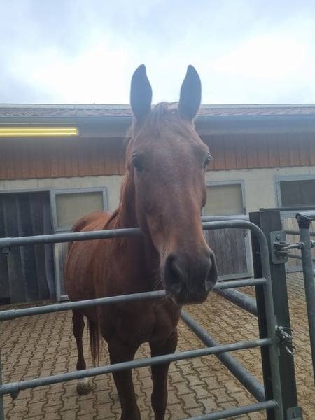 Due to a reduction in our stock, we are selling our beautiful Hanoverian mare Mira, born in 2021. With her striking chestnut coat and a current height of approximately 16.1 hands, she is truly a head-turner both in appearance and character. The mare is healthy. Mira is untrained and therefore perfect for self-training. If you are interested or need further information, please feel free to contact me. We look forward to hearing from you!