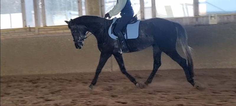 Verkaufe elegante Hannoveraner Stute – Rappschimmel, Geburtsjahr 2022 Zum Verkauf steht eine wunderschöne Hannoveraner Stute, geboren im Jahr 2022. Mit ihrem beeindruckenden Stockmaß von 169 cm vereint sie Größe und Anmut. Als Rappschimmel besticht sie durch ihr edles Erscheinungsbild und ihre charmante Ausstrahlung. Diese talentierte Dressurstute zeigt vielversprechende Grundgangarten und eine angenehme Lernbereitschaft. Sie eignet sich ideal für ambitionierte Reiter, die eine vielversprechende Nachwuchshoffnung oder eine zuverlässige Partnerin für den Dressursport suchen. Bei Interesse oder weiteren Informationen stehe ich gerne zur Verfügung. Kontaktieren Sie mich, um mehr über dieses besondere Pferd zu erfahren!