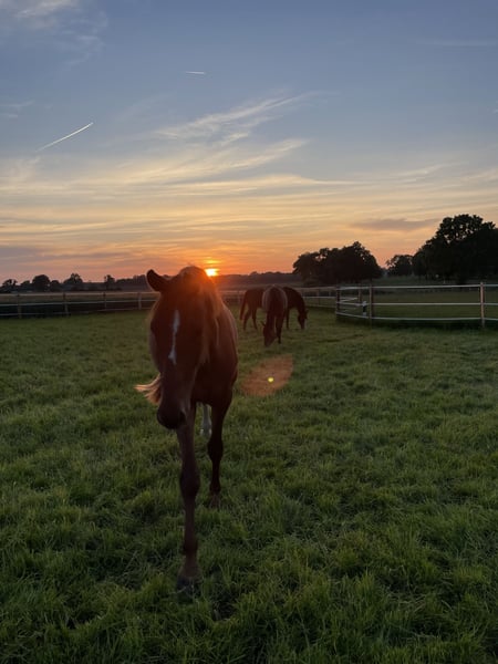 À vendre : la jument de 4 ans, Valera, par Va' Pensiero x Borsalino. Valera a un caractère très sociable et est toujours curieuse et câline. Elle possède également des allures de base au-dessus de la moyenne ! Actuellement, elle vit en paddock avec une autre jument, connaît la vie en groupe avec plusieurs chevaux et s’est montrée jusqu’à présent plutôt dominante. Elle n’a pas encore été montée ni lungée. Je souhaite pour Valera un propriétaire passionné qui prendra plaisir à s’occuper d’elle et lui consacrera beaucoup d’attention, c’est pourquoi elle ne sera pas confiée à un marchand. Pour plus d’informations, de photos ou de vidéos de Valera, n’hésitez pas à me contacter par téléphone ou à m’envoyer un message via WhatsApp au numéro suivant : +49 176 80156296.
