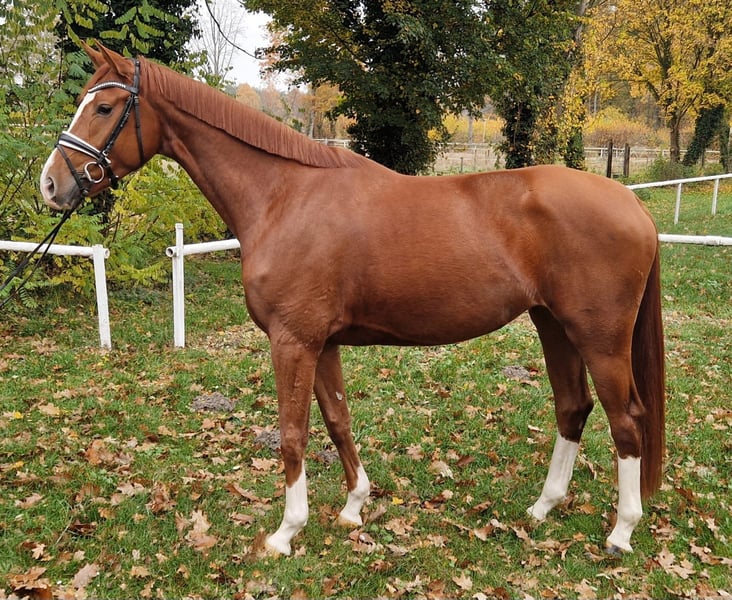 ✨ Stylish Young Dressage Horse with Excellent Character for Sale ✨ For sale is an expressive 4-year-old chestnut mare with outstanding potential for dressage. Breed: Hanoverian Color: Chestnut Height: approximately 1.74 m (17.1 hh) Age: 4 years Pedigree: Sezuan - Fürst Romancier Training: at the level of Dressage Horse A, progressing towards Dressage Horse L Gaits: all three gaits are equally well-developed and balanced Temperament: completely honest, nervously steady, human-oriented, and straightforward in daily handling This young horse impresses with her elegant appearance, lovely temperament, and talent under saddle. She consistently shows willingness to perform and learn – ideal qualities for a successful future in the dressage arena. She is currently highly placed in A-level dressage competitions. Whether an ambitious amateur or a professional rider – this horse has everything one could wish for in her further training. Directly from the breeder. A video can be sent upon request. Location: 29336 Nienhagen