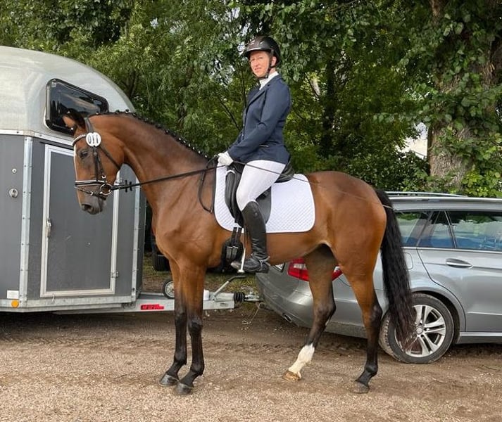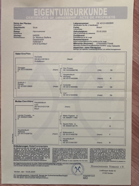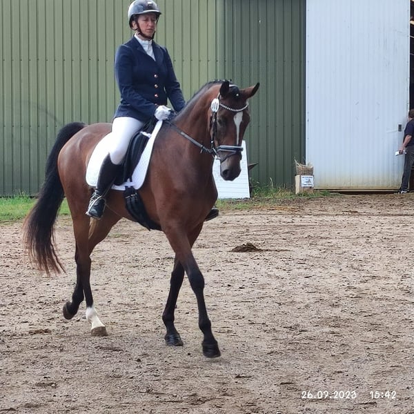 Debby, a 5-year-old premium mare measuring 1.64 m, by the proven performance stallion Da Costa, a successful dressage stallion up to the advanced level, including participation in the Nürnberger Burg Pokal. The dam's sire is Lauries Crusador, one of the highly rated thoroughbreds in the German Warmblood breed. Debby has successfully completed her performance test and was honored with the Hanoverian premium. This year, Debby had her first foal. This SF by Global Hope, winner of the Bundeschampionat, was awarded the highest distinction, the gold premium. Now the mare is waiting for a rider who would like to further train this rough diamond. The mare was not covered this year. Just call and make an offer...