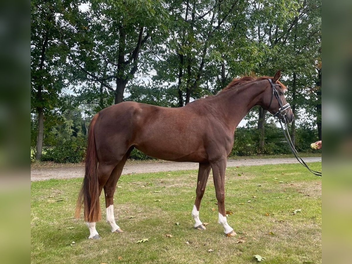 For sale: Hanoverian mare – dark chestnut, born in 2021 We are offering an elegant and talented Hanoverian mare, born in 2021. Standing at 16.1 hh, she combines size and grace perfectly. Her stunning dark chestnut coat makes her an exceptionally beautiful mare. Elegant, stylish, gentle, and easy to ride, she comes from our own breeding program. Her strength lies in dressage, and she has an exceptionally kind temperament when ridden. A loving mare that the rider can rely on. An ideal partner for competitive dressage, leisure riding, and also suitable for trail riding, as she remains calm and friendly in the terrain. If interested, I am happy to provide further information and arrange a viewing.