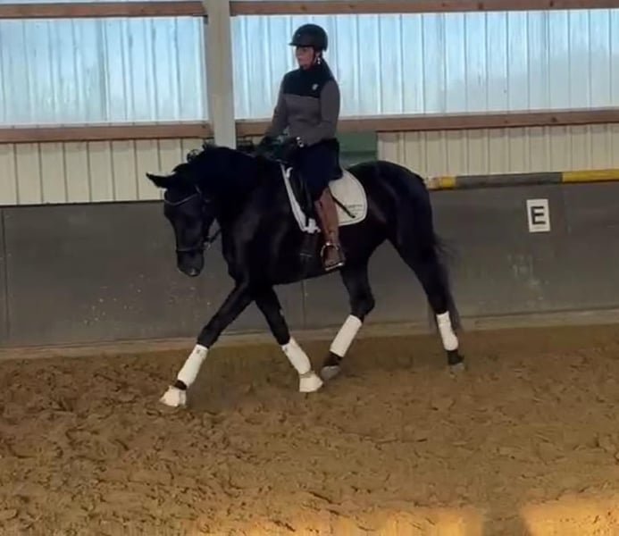 Hannoveraner Stute, 5-jährig – Fendi x Sandro Hit x Weltmeyer x Florestan Zum Verkauf steht eine vielversprechende Hannoveraner Stute, 5 Jahre alt, aus hochwertiger Dressurabstammung: Vater Fendi x Sandro Hit, Mutter Weltmeyer x Florestan. Für ihr junges Alter ist sie sehr brav und umgänglich. Im täglichen Umgang zeigt sie sich ruhig, freundlich und unkompliziert. Unter dem Sattel ist sie ehrlich, dabei altersbedingt noch jung und unerfahren. Sie benötigt einen sicheren, konsequenten Reiter, der ihr klare Strukturen gibt und sie ruhig weiter ausbildet. Nicht für Anfänger geeignet, da sie – wie jedes Jungpferd – verlässliche Führung braucht. Mit entsprechender Sicherheit vonseiten des Reiters zeigt sie sich zuverlässig und angenehm. Die Stute verfügt über gute Grundgangarten und eine altersgerechte Ausbildung. Sie bringt beste Voraussetzungen für die weitere dressurmäßige Entwicklung mit und ist interessant für den ambitionierten Freizeitreiter ebenso wie für den Nachwuchs-Dressurreiter. Ein Züchter-TÜV ohne Befund liegt aus Anfang 2024 vor. Vorne links besteht ein kleines Überbein, welches rein optischer Natur ist und sie in keiner Weise beeinflusst. Gesucht wird ein passendes, förderndes Zuhause, in dem sie fair, konsequent und mit Ruhe weiter ausgebildet wird. Weitere Informationen, Fotos und Videos gerne auf Anfrage.