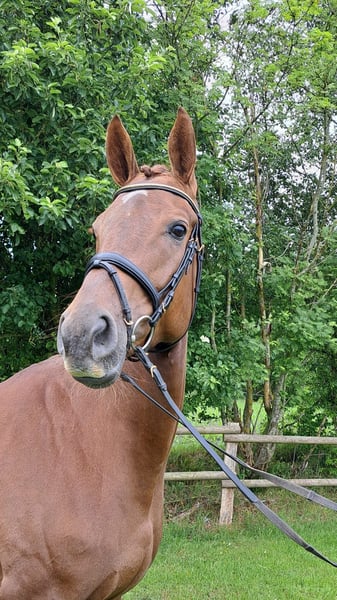 Nous proposons ici une jument expressive de 5 ans, issue de Floriscount x Hochadel. En raison de sa croissance, elle a bénéficié de beaucoup de temps pour mûrir. Dotée de trois allures de base très bonnes, elle se révèle être une cavalière de dressage exceptionnelle. Avec un entraînement approprié, c’est sans doute une monture capable de performer dans le grand rectangle de dressage.