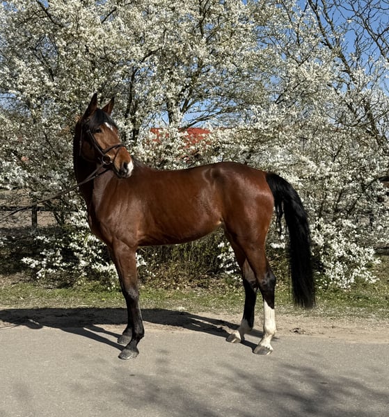 Duża, sportowa klacz skokowa Hannoveraner o doskonałym rodowodzie Na sprzedaż oferujemy imponującą, duża klacz Hannoveraner (ur. 2021) o wierzchowcowej wysokości około 178 cm. Pochodzi z bardzo interesującego rodowodu skokowego (Chacco Blue / Calido) i posiada wszystkie predyspozycje do wysokiego sportu skokowego. Kupiłem ją jako trzyletnią. Klacz wykazuje dużą motywację, chęć do nauki oraz bogate predyspozycje. Pod siodłem zaczyna obecnie pokonywać niewielkie parkury i prezentuje wysoką jakość oraz dobrą postawę do pracy. Ze względu na poziom jej wykształcenia, jest jeszcze na początku swojej dalszej sportowej kariery, co oznacza, że ma duży potencjał na przyszłość.