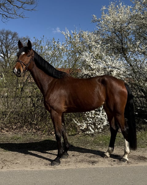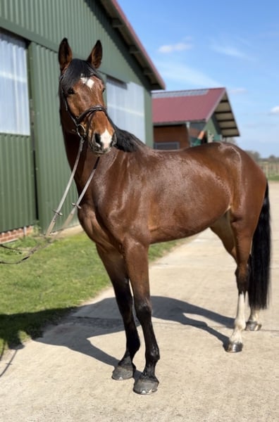 Großrahmige, sportliche Hannoveraner Springstute mit Top-Abstammung Zum Verkauf steht eine beeindruckende, großrahmige Hannoveraner Stute (geb. 2021) mit einem Stockmaß von ca. 1,78 m. Sie stammt aus einer hochinteressanten Springabstammung (Chacco Blue / Calido) und bringt beste Voraussetzungen für den gehobenen Springsport mit. Ich habe sie dreijährig gekauft. Die Stute zeigt sich motiviert, lernwillig und mit viel Vermögen ausgestattet. Unter dem Sattel beginnt sie aktuell einen kleine Parcours zu springen und zeigt dabei viel Qualität sowie eine gute Einstellung zur Arbeit. Aufgrund ihres Ausbildungsstandes steht sie noch am Anfang ihrer weiteren sportlichen Entwicklung und bietet somit viel Potenzial für die Zukunft.