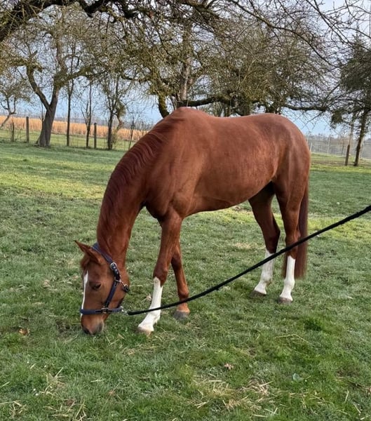 Sehr gute Abstammung und Bewegungen zur Zucht geeignet. Beim Reiten sensibel, aktuell nicht geritten. Gute Röntgenbilder.