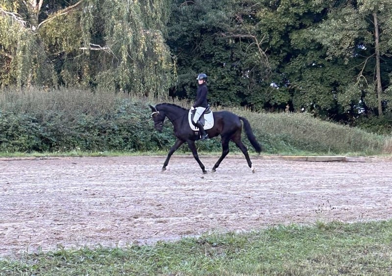 Bildschön, leichtrittig, brav im Gelände, erfolgreich auf Turnieren, absolut artig und einen sehr guter TÜV - klingt zu schön um wahr zu sein?! Nein, es ist tatsächlich so und wir sind sehr stolz, diese tolle Stute gezüchtet zu haben. Wir haben sie ganz in Ruhe erwachsen werden lassen und eine gute Freundin hat sie behutsam und vor allem vielseitig ausgebildet. Barbie war in der vergangenen Saison mehrfach platziert und konnte in der Dressurpferde A unter anderem den dritten Platz belegen. Die Lektionen für L sind ihr bekannt. Besonders stolz sind wir auf ihre Leichtrittigkeit und dass sie mit nur einmaligem "Probereiten" ein 13-jähriges Mädchen aus dem Stall erfolgreich zum 2. Platz einer E-Dressur getragen hat, als ihr Pferd plötzlich krank wurde. Daher können wir sie auch wirklich als tolles Umsteigerpferd empfehlen. Auch auf die Ausbildung im Gelände haben wir viel Wert gelegt, da es uns wichtig ist, dass unsere Pferde gut UND abwechslungsreich ausgebildet werden. Barbie steht jeden Tag draußen und verträgt sich auch hier mit allen anderen. Da wir weiter züchten suchen wir für diese tolle Stute nun einen neuen Heimatstall, wo sie gern weiter dressurmäßig gefördert und ihr Weg im Sport weiter ausbildet wird. Von der Qualität, die sie mitbringt, sind hier wenig Grenzen gesetzt. Wichtig ist uns auch eine weiterhin gute Haltung mit täglichem Weide-/Paddockgang und ein abwechslungsreiches Training. Wenn dies zu dir passen könnte, dann melde dich gern bei uns und wir vereinbaren einen Telefontermin. Bitte habt Verständnis dafür, dass wir nur Personen zum Probereiten einladen, bei denen wir eine echte Absicht sehen und bei denen es von beiden Seiten aus passen könnte. (Video wird erst nach erfolgtem Telefonat versendet. Röntgenbilder sind vorhanden und werden bei Kaufinteresse gern zur Verfügung gestellt)