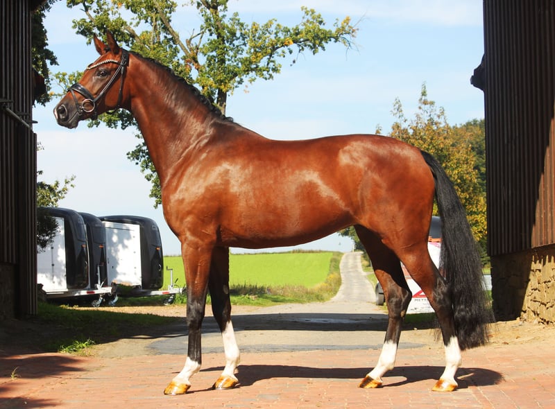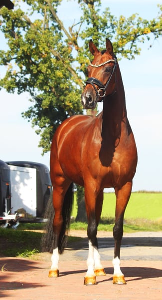 Verkauft wird aus privaten Gründen diese 6 jährige bildschöne Stute im handlichen Format, dem Herz am rechten Fleck, sowie Qualität für ganz oben. Sie konnte bereits Siege und vordere Platzierungen in Jungpferdeprüfungen in Deutschland mit Noten bis 9,0 holen und ist zudem aktuell FEI bei den 6 jährigen platziert. Aufgrund ihres unerschrockenen ehrlichen Charakters und durchweg positiver Einstellung ist sie auch bereits von Junioren/Amateuren sehr gut zu bedienen. Sie liebt Springgymnastik, Ausritte, Aquatraining sowie ihren täglichen Weidegang. Eine tolle Stute fürs Leben! Aktuell steht sie in Spanien. Gern holen wir Sie vom Flughafen ab und organisieren den Transport im Falle eines Kaufes.