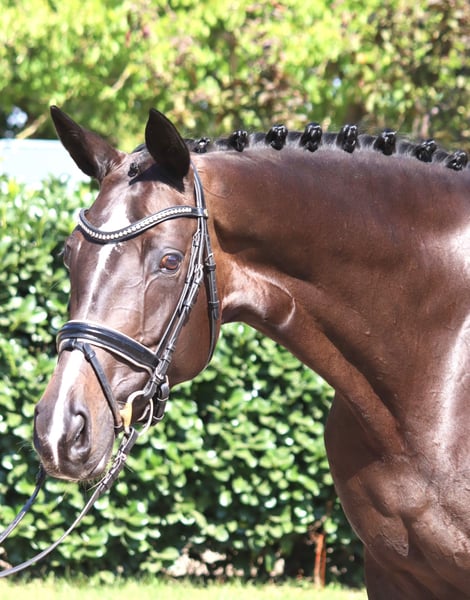 Sympathische 6 jährige Stute Bon Coeur x Hohenstein mit 3 sehr guten Grundgangarten und hervorragender Rittigkeit. Sie ist bereits auf Dressurpferde L Niveau zu reiten und konnte dieses bereits mit Platzierungen unter Beweis stellen. Ein absolut unkompliziertes Pferd, das in der täglichen Arbeit immer Spass macht. Preis zzgl. Mwst. Anfragen nur telefonisch, E-mails werden nicht beantwortet.