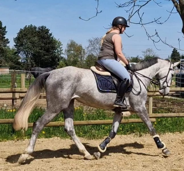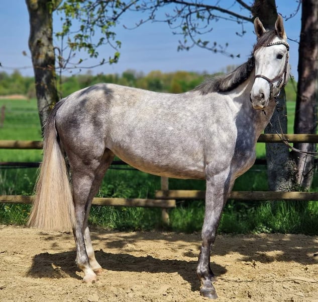 Hildegard è nata con noi il 02.2020 e attualmente ha 168 anni, anche sua madre può essere vista con noi, la madre ha avuto successo in prove di salto ostacoli fino al livello M, Hildegard conosce il puledro una volta che sa come condurre, sollevare i piedi, ha 3 anni e mezzo, conosce il peso del cavaliere, è cresciuta in una mandria e conosce la stalla aperta. Nei suoi primi tentativi di salto libero mostra ciò che vuole diventare e le sue andature lasciano aperte tutte le possibilità e i desideri. Vorremmo darle una casa piacevole e solidale dove un giorno possa iniziare una carriera sportiva dolce e dove sia vista come una compagna e non come un pezzo di equipaggiamento sportivo. Se avete altre domande non esitate a contattarmi. Due anni, radiografata a gennaio senza rischi. Il prezzo aumenta con l'ulteriore addestramento Abbiamo anche la sorella completa in vendita, lei è ora ora due anni anche lei radiografata senza rischio L'ultima foto è la sorella completa che ha un prezzo di 12000 vhb. Se avete altre domande, vi offriamo anche un pacchetto di prezzi.