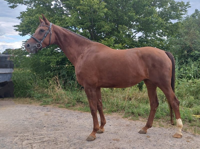 Zum Verkauf steht eine 6-jährige Stute von Don Nobless aus einer Mutter von Soliman de Hus. Diantha wurde seit 3-jährig von einem jugendlichen Amateur geritten und befindet sich auf A-Niveau in der Dressur. Einzelne Lektionen der Klasse L wie Außengalopp sitzen schon recht sicher. Im Gelände ist sie sehr brav, sowohl alleine als auch in der Gruppe. auf dem Turnier wurde sie noch nicht vorgestellt, ihre sehr guten Grundgangarten lassen hier jedoch alle Möglichkeiten offen.Auch am Springen hat sie viel Spaß. Röntgen-AKU von 2022 liegt vor. Anfragen bitte nur telefonisch oder per WhatsApp unter 0157/36343268.