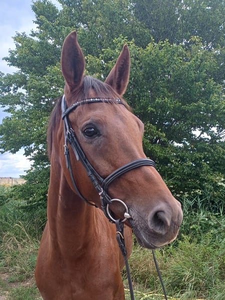 Na sprzedaż 6-letnia klacz po Don Nobless z matki po Soliman de Hus. Diantha była jeżdżona przez młodego amatora od 3. roku życia i znajduje się na poziomie A w ujeżdżeniu. Niektóre lekcje klasy L, takie jak galop zewnętrzny, są już dość pewne. W terenie jest bardzo grzeczna, zarówno sama, jak i w grupie. Na zawodach jeszcze nie startowała, jednak jej bardzo dobre podstawowe chody otwierają tutaj wszystkie możliwości. Również skakanie sprawia jej dużo radości. Posiadamy zdjęcia rentgenowskie z 2022 roku. Proszę o kontakt wyłącznie telefoniczny lub przez WhatsApp pod numerem 0157/36343268.