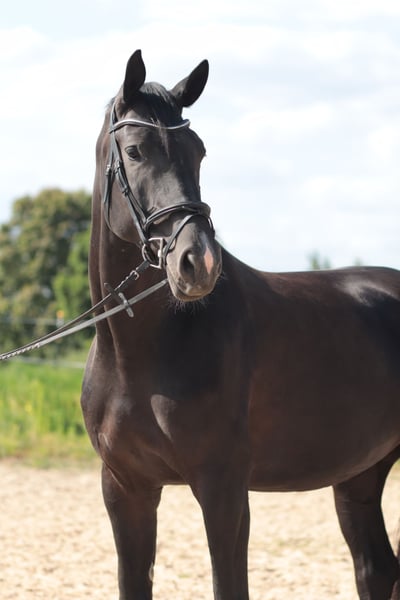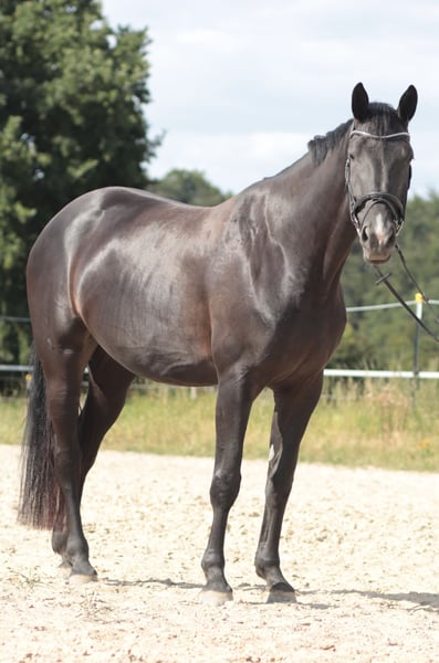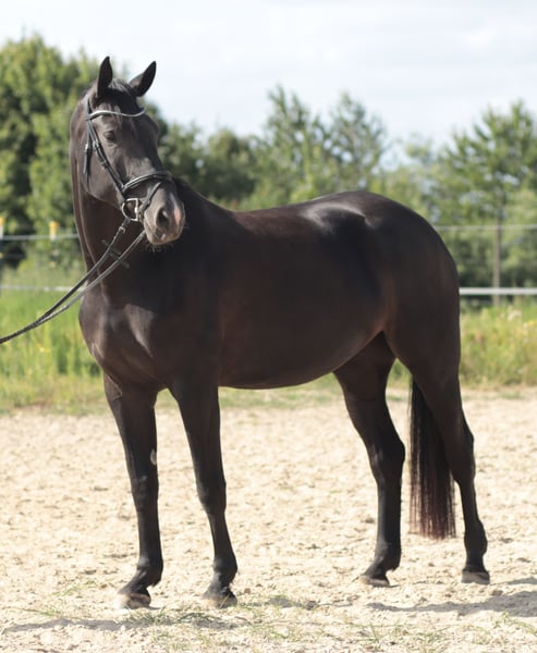 A fantastic young prospect with great potential for further training. Although this young black mare has not yet been shown in competitions, she is already attracting attention. Viscora is 5 years old and descends from Viscerado x Stalypso. She measures approximately 17.2 hh and has been lightly backed due to her growth, and she has been progressing with patience and calmness. She is still at the beginning of her training as a show jumper. She impresses with her size, presence, and quality! She is solidly trained in dressage and consistently shows motivation and a willingness to learn. Viscora is delicate and extremely pleasant to ride. A promising, sensitive young mare for further sporting endeavors. A horse that simply brings joy and inspires hope for a wonderful future together. She is accustomed to training in unfamiliar environments but needs some time to settle in fully. With her very sensitive and somewhat reserved nature, she requires an experienced, empathetic rider who can provide her with security. Ideal for riders seeking a young horse to develop and grow together. The mare is unspoiled and possesses excellent potential for her future sporting career. Viscora is ready for an ambitious show jumper—preferably in caring, supportive hands! This wonderful Hanoverian mare is now looking for a suitable home where she can be further developed and showcase her qualities. Additional videos available upon request!