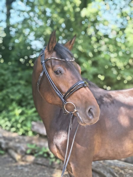 Casmira is a truly special horse with an equally extraordinary presence! She comes directly from the breeder and has been carefully trained due to limited time. Casmira is confidently ridden in all three gaits, is familiar with small jumps under saddle, and can perform flying changes in the show jumping course. She requires a rider with a gentle hand. When free jumping, she demonstrates great talent, agility, quick reflexes, and excellent awareness. In 2022, she impressed with good results at the free jumping competition in Verden. Otherwise, she has not been publicly presented. Her dam, State Premium Mare Europa, has produced numerous successful offspring in show jumping up to 1.40 m and herself achieved an outstanding mare performance test. Casmira grew up on our extensive marshy pastures within a large herd and is well socialized. She is uncomplicated in handling. She is familiar with agricultural machinery, cattle, chickens, and dogs. She is curious and interested in her environment. If interested, I am happy to provide further information and arrange a viewing. Please contact me to learn more about this promising mare!