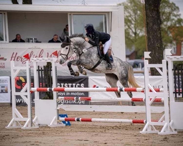 Elegante Stute – Apfelschimmel, geb. 2018 Diese wunderschöne Hannoveraner Stute besticht durch ihr ansprechendes Erscheinungsbild und ihre hervorragenden Springfähigkeiten. Mit einem Stockmaß von ca. 168 cm bietet sie die perfekte Größe für ambitionierte Reiter und Springreiter. Sie ist im Jahr 2018 geboren und überzeugt durch ihr freundliches Wesen sowie ihre Lernbereitschaft. Dank ihrer guten Abstammung und ihres vielseitigen Talents ist sie ideal für den Springreitsport geeignet und zeigt bereits vielversprechende Leistungen im Parcours. Sie hat M-Springen gewonnen und ist Springpferde bis 1,20m platziert. Sie kommt aus einem sehr erfolgreichen Mutterstamm und wäre auch für den späteren Einsatz in der Zucht interessant. Ein sehr guter Röntgentüv liegt vor. Bei Interesse oder für weitere Informationen stehe ich Ihnen gerne zur Verfügung. Besichtigung und Probereiten nach Absprache möglich.