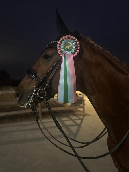 Die 7-jährige Hannoveraner Stute Fleur (ca. 1,70 m) ist seit sie Fohlen ist in unserem Besitz. Sie besticht durch drei überdurchschnittliche Grundgangarten: – einen überragenden, schreitenden Schritt, – einen schwungvollen, taktsicheren Trab – sowie eine bergauf angelegte, kraftvolle Galoppade. Fleur präsentiert sich in der täglichen Arbeit stets mit hervorragender Rittigkeit, feiner Anlehnung und ausgezeichneter Losgelassenheit. Ihr besonderes Markenzeichen ist ihre außergewöhnliche Durchlässigkeit – sie bewegt sich stets elastisch und fließend durch den ganzen Körper, bleibt dabei jederzeit im Gleichgewicht und fein an den Hilfen. Diese Qualität verleiht ihr eine besondere Leichtigkeit und Harmonie im Bewegungsablauf. Sie begeistert durch ihre konstante Leistungsbereitschaft, ihre Konzentration und ihren klaren Kopf – sowohl zu Hause als auch auf dem Turnier. Sportlich ist Fleur in Dressurpferdeprüfungen der Klasse M mit 8er Noten platziert, ebenso in M*- und M**-Dressuren erfolgreich vorgestellt und platziert. Erste S-Lektionen beherrscht sie sicher und zeigt dabei viel Talent und Versammlungsfähigkeit. Auch in neuen Umgebungen und im Gelände überzeugt Fleur durch ihren vorbildlichen Charakter und ihre Nervenstärke. Sie ist ein Pferd, das stets gefallen möchte und dabei jeden Tag Freude bereitet. Ein aktueller Röntgen-TÜV (04/2025) liegt ohne besonderen Befund vor. Fleur vereint alles, was man sich von einem modernen Dressurpferd wünscht: Typ, Bewegung, Rittigkeit und Charakter – eine Ausnahme-Stute mit Perspektive für den gehobenen Sport. Anfragen telefonisch oder via WhatsApp gerne unter 0157 867 66 492