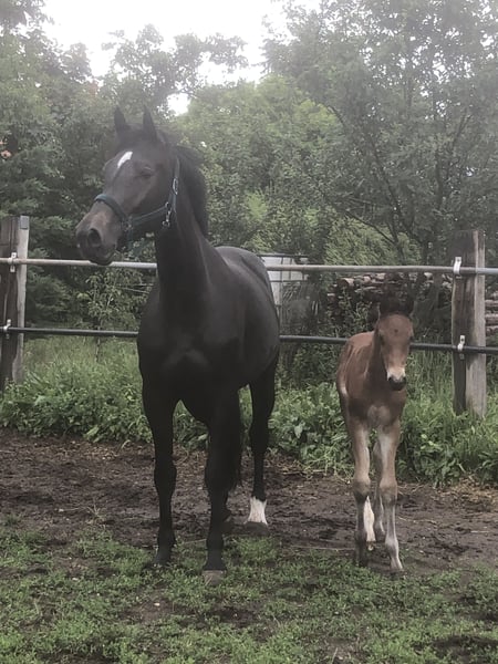 Zum Verkauf steht eine wunderschöne Stute aus erstklassiger Zucht. **Merkmale:** - **Rasse:** Hannoveraner, eingetragen beim Springpferde-Zuchtverband Oldenburg International - **Geschlecht:** Stute - **Geburtsjahr:** 2019 - **Farbe:** Schwarzbraun - **Stockmaß:** 170 cm Diese tolle Stute besticht durch ihren harmonischen Körperbau, tolle Bewegungen und schon erste vielversprechende Nachzucht. Sowohl über ihren Vater Conteur als auch über Muttervater Aljano ist eine Doppelveranlagung gegeben. Sie kann sich toll bewegen, wurde aber bisher mit Springhengsten angepaart und hat uns ein wunderbares Stutfohlen von Dinken geschenkt (auf den Fotos zu sehen). Für 2026 ist sie sicher tragend von Vagabond (von Vagabond de la Pomme x C- Indoctro, Hengststation Sosath). Sie hat immer direkt beim ersten Versuch aufgenommen, eine unkomplizierte Trächtigkeit sowie Geburt gehabt und ist eine vorbildliche Mutter. Sicher ist sie auch aufgrund ihrer Abstammung, Exterieur und Wesen interessant als Reitpferd, derzeit aber noch roh bedingt durch den Zuchteinsatz. Bei Interesse oder weiteren Fragen stehe ich Ihnen gerne zur Verfügung.