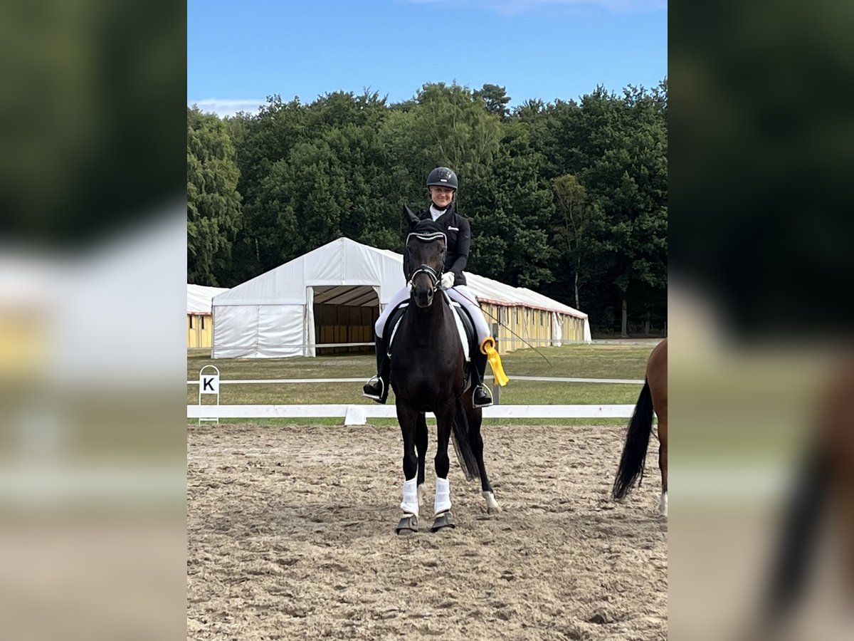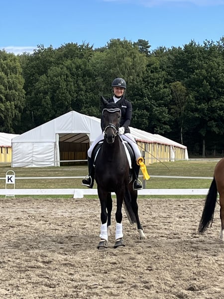 Wir suchen das allerbeste Zuhause für unsere ❤️Fanta❤️. Sie ist selbst gezogen (Finest x Riccione x Wolkenstein ll x Glücksstern x Jet Stream xx x Davos), 8-jährig, bildschön, dunkelbraun, ca. 1,63 groß, mit feinem Köpfchen und intelligentem Blick. Fanta war immer bei uns, hat nie zu Ausbildungszwecken den Hof verlassen. Vom ersten bis zum heutigen Tag hat sie einen „lückenlosen Lebenslauf“ vorzuweisen. Vom Anlongieren, Anreiten, … bis zu ihren Turniererfolgen liegt/lag alles in unserer Hand. Mit 5 Jahren, relativ spät angeritten, ist das „Gerittenwerden“ zu ihrem liebsten Hobby geworden. Dank unserer fantastischen Reiterin hat sie eine vielseitige Ausbildung genossen. Fanta hat x A-Dressuren gewonnen mit Noten bis 8,5, war in 2025 mehrfach L-platziert. Sie liebt es, Gymnastiksprünge zu springen und zeigt sich dabei sehr geschickt. Viel Vermögen hat sie jedoch nicht, ein A-Parcours wäre zu viel für sie. Ebenfalls genießt sie es, kleine Geländesprünge zu machen. Halsringreiten findet sie ebenfalls klasse! Fanta ist sehr fein zu reiten, ist nicht „zusammengezogen“, kennt reelle Dehnungshaltung, ist „wach“, ein absolutes „Spaßmobil“! Fanta ist täglich motiviert und gibt ALLES für ihre Reiterin. Wir haben immer dafür gesorgt, dass sie viel Abwechslung und Freude bei der Arbeit hat und das gibt sie zurück. Sie kennt Weidegang, Führmaschine, ist verträglich mit anderen Pferden, ein Schatz im Umgang! Schmied, Verladen, … alles kein Problem! Wir suchen DEN Menschen für Fanta! Jemand, der gefühlvoll, mit Leichtigkeit und Freude reitet, der ihr ein „fantastisches Wohnumfeld“ bieten kann, der verantwortungsvoll mit ihr umgeht und der zumindest den Plan hat, ihr ein „Für-immer-Zuhause“ zu bieten. Fanta ist kein Anfängerpferd und kein Gewichtsträger. Falls Sie sich angesprochen fühlen, melden Sie sich gerne. Weitere Infos teile ich gerne persönlich. Ich habe unzähliges Videomaterial, was ich gerne verschicke an die passenden Menschen….