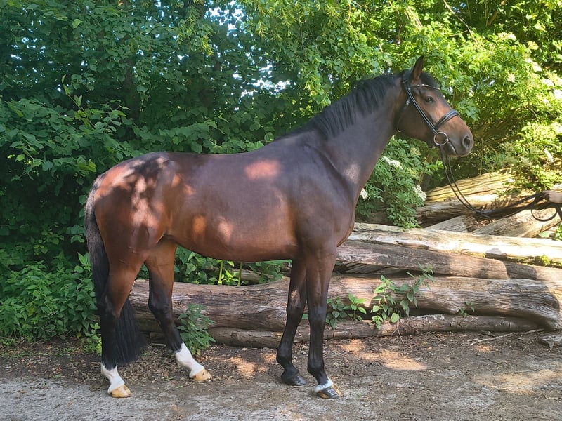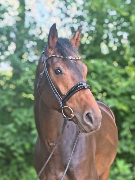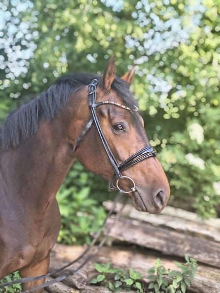 Casmira is a very special horse with an equally remarkable presence! She comes directly from the breeder and has been gently trained due to limited time. Casmira is confidently ridden in all three gaits, is familiar with small jumps under saddle, and can perform flying changes in the show jumping course. She requires a rider with a sensitive hand. When free jumping, she demonstrates great talent, agility, quick reflexes, and excellent overview. In 2022, she impressed with good results at the free jumping competition in Verden. Otherwise, she has not been publicly presented so far. She is also very motivated during ground work and always wants to do everything correctly. Her dam, the state premium mare Europa, has produced numerous successful sport offspring up to 1.40m show jumping and herself achieved an outstanding mare performance test. Casmira grew up on our extensive marshland pastures in a large herd and is well socialized. She has never been ill, has no eczema or similar issues. She is straightforward and well-behaved in handling. She is familiar with agricultural machinery, cows, chickens, and dogs. She is curious and interested in her environment but unafraid. If you are interested, I am happy to provide further information and arrange a viewing. Contact me to learn more about this promising horse!
