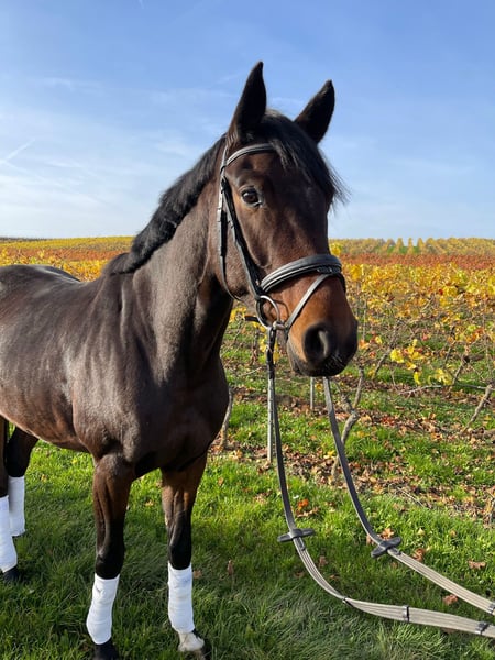 Beautiful Hanoverian mare, not suitable for beginners, loads well, for sale at A-level.