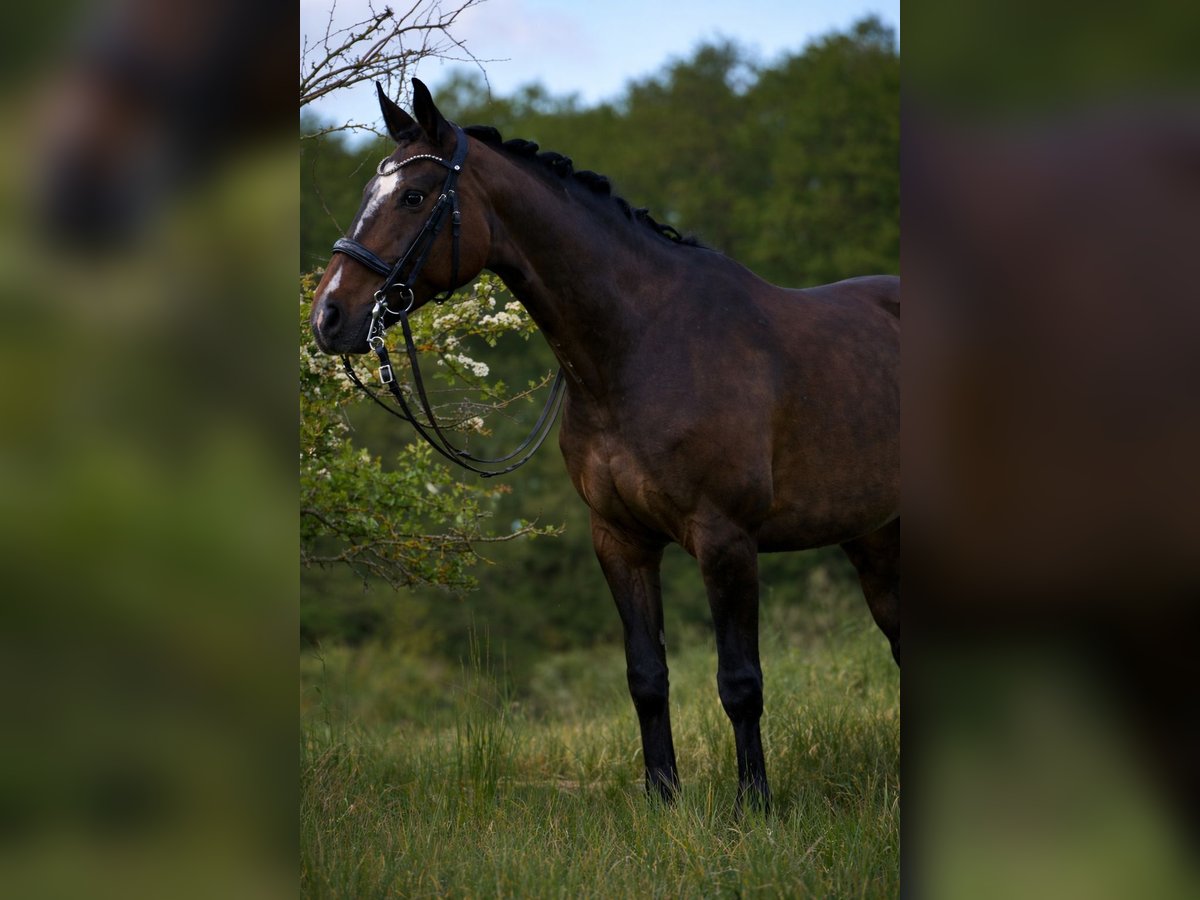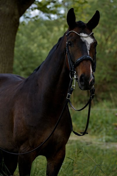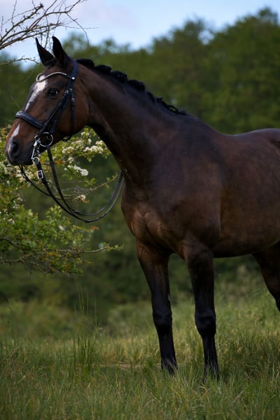 For sale is a 2018-born Hanoverian mare with excellent basic gaits and a high level of quality. Her expressive trot is particularly noteworthy and is expected to develop into a very good passage in the future. The mare is experienced in competition and has already been successful in both dressage and show jumping. She reliably moves out in extended canter, masters all lateral movements, and has already begun work on flying changes. She also proves to be confident and reliable in the cross-country terrain. Additionally, she has shown courage and good manners on an outdoor cross-country course, where she experienced her first eventing moments. She is familiar with different venues through off-site training, is experienced in cross-country riding, and is very well-behaved and uncomplicated in handling thanks to regular lessons. With a height of approximately 1.70 m (16.1 hh), she is a sporty type, eager to learn, motivated, and possesses great potential for further development.