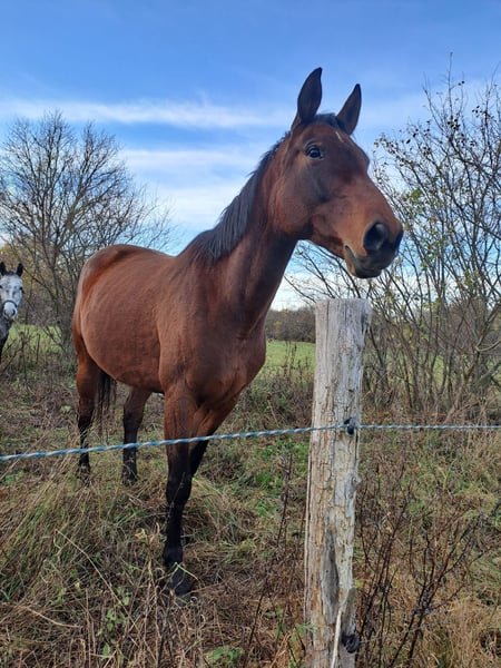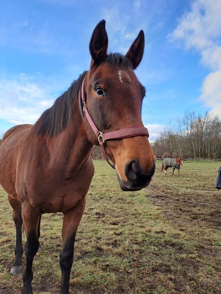 Allis is a lovely, people-oriented mare who enjoys being affectionate in daily interactions. She is very attentive, reacts sensitively to her environment, and requires an experienced handler to provide her with a sense of security. She is familiar with groundwork and works with motivation. On the longe line, she displays a lot of temperament. Allis is being sold as a broodmare and/or companion horse. Due to her pedigree, she has interesting bloodlines suitable for breeding. She also makes a good companion with the potential for riding at a later stage. A health check from July 2025 is available. She is vaccinated, regularly dewormed, and has been introduced to the farrier. She has a slightly steep hoof wall on one hoof, which is currently being addressed by the farrier. When lifting her front left hoof, she shows some discomfort, but she is cooperative with all other hooves. She is accustomed to turnout in an open stable, pasture, paddock, or staying in a box overnight. Feel free to contact us to get to know her. We are looking for a loving home for her with experienced horse people. Space takes priority over price.
