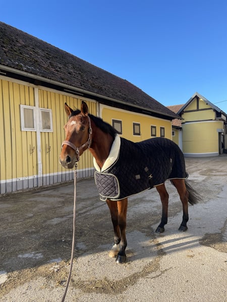 Hannoverian Mare by Stolzenberg x Comte – Breeding Mare We are offering our typy Hannoverian mare, Samy Deluxe, born in 2017, for sale. Due to veterinary advice, she is being sold exclusively as a broodmare or companion horse. Samy is sired by Stolzenberg out of Comte, giving her a pedigree that leaves nothing to be desired. Jumping ability, caution, and willingness to perform are qualities she has been blessed with from the start. She has successfully competed up to 95 cm and has also passed her licensing test over 105 cm. Throughout, she has consistently demonstrated ambition, talent, and a great work ethic. Her potential for higher levels has always been evident. Samy is a characterful, honest mare with a lot of quality, now seeking a loving home where she can pass on her valuable genes. We wish her a caring environment where she will be appreciated. For inquiries or further questions, we look forward to hearing from you personally.