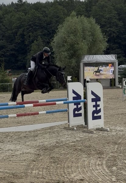 Se ofrece una talentosa y robusta yegua Hannoverana de tipo semental, nacida en 2016. Esta yegua impresiona no solo por su aspecto atractivo, sino también por su potencial y su actitud en salto. Ha sido colocada varias veces en concursos de salto de categoría M, ha ganado en pruebas de potros y también en una prueba de campo. Esto destaca su disposición al rendimiento, su actitud positiva hacia el trabajo y su valentía. Además, cuenta con buenos movimientos naturales, ha sido colocada en la categoría de doma clásica A, aunque no ha sido presentada en competición. Es muy bonita para la doma y fácil de montar, salta con facilidad cambios de pie en vuelo, se desplaza con ligereza en la grupa y en contacto. Es tranquila en su manejo, bien educada y apta tanto para jinetes experimentados como para jinetes ambiciosos que quieran potenciar su talento. Sin embargo, no la consideramos una yegua para principiantes. La compramos directamente del criador cuando tenía 4 años. La vendemos porque actualmente tenemos demasiados caballos y estamos quedándonos con caballos jóvenes que atender. Para más información, no duden en contactarnos :)