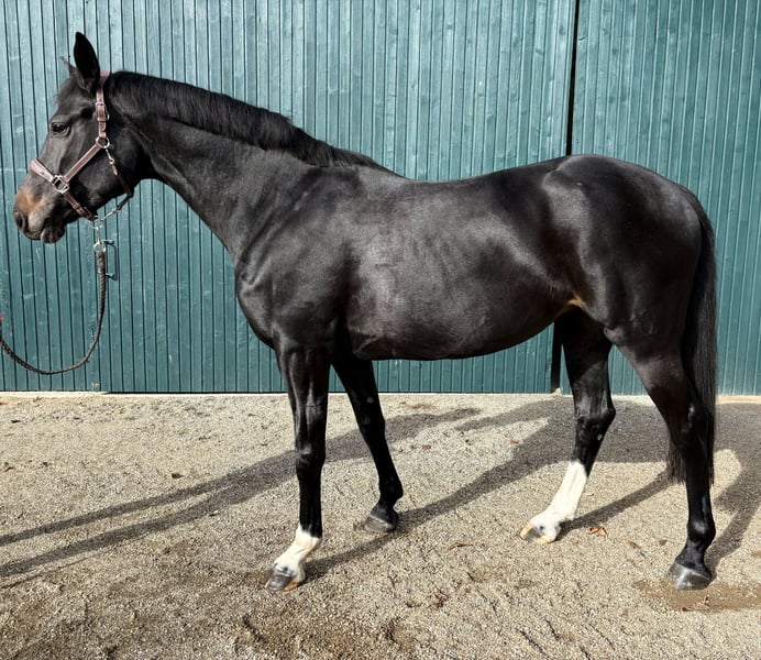For sale is a talented, stallion-type Hanoverian mare, born in 2016. This mare impresses not only with her appealing appearance but also with her potential and attitude in jumping. She has placed multiple times in M-level show jumping, was victorious in young horse jumping competitions, and has won a cross-country horse test, highlighting her willingness to perform, positive work ethic, and courage. Furthermore, she is equipped with good basic gaits, has placed in A-level dressage competitions, but has not been further presented at shows. She is very nice and easy to ride in dressage, jumps flying changes effortlessly, and is easy to ride through the neck and in contact. She is well-mannered, well-trained, and suitable for both experienced riders and ambitious riders who wish to further develop her talent. However, we do not see her as a beginner's horse. We acquired her at the age of 4 directly from the breeder. She is being sold because we currently have too many horses and young horses are coming in. For more information, feel free to contact us personally :)