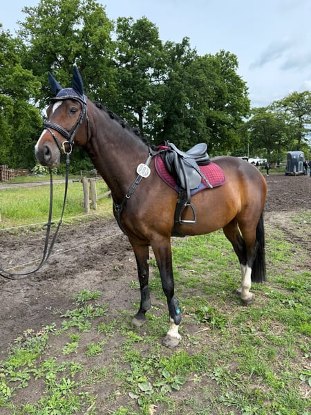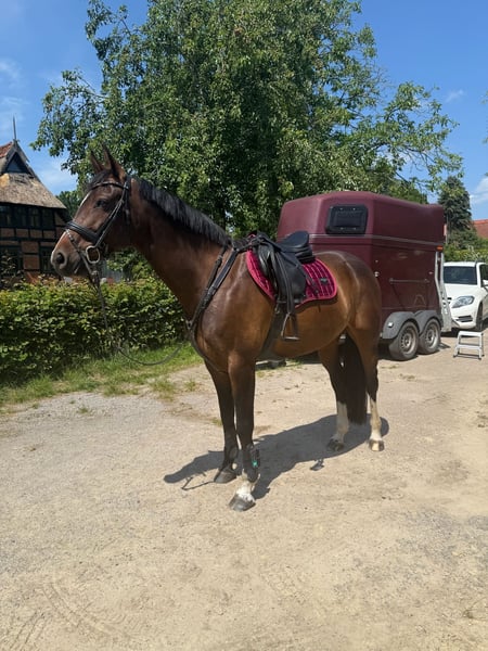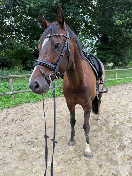 For sale is a 9-year-old all-rounder horse with a lot of potential and ambition for jumping – not a beginner's horse, but a partner for ambitious riders with experience. 🔹 Age: 9 years 🔹 Disciplines: Jumping, Dressage, Eventing 🔹 Jumping: Successfully competed at A-level up to class E, placements available, potential for more 🔹 Dressage: Confident at good A-level, also masters L-level exercises 🔹 Eventing: Gained initial experience – shows motivation and eagerness to learn 🔹 Character: Lots of go, willing to work, fearless, brave, intelligent – requires consistent, sensitive guidance The horse not only has talent but also the necessary ambition to continue progressing with the right rider. Ideal for someone looking for a sporty horse with prospects and enjoyment in work. SPACE BEFORE PRICE!
