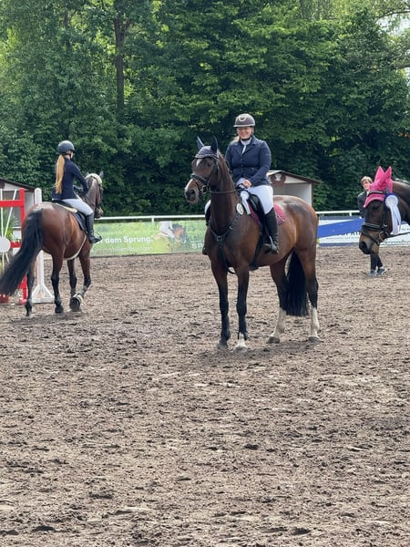 Zum Verkauf steht ein 9-jähriges Allrounderpferd mit viel Potenzial und Ehrgeiz fürs Springen – kein Anfängerpferd, sondern ein Partner für ambitionierte Reiter mit Erfahrung. 🔹 Alter: 9 Jahre 🔹 Disziplinen: Springen, Dressur, Vielseitigkeit 🔹 Springen: Auf A-Niveau Erfolgreich bis Klasse E, Platzierungen vorhanden, Potenzial für mehr 🔹 Dressur: Sicher auf gutem A-Niveau, beherrscht auch L-Lektionen 🔹 Vielseitigkeit: Erste Erfahrungen gesammelt – zeigt sich motiviert und lernfreudig 🔹 Charakter: Viel Go, arbeitswillig, unerschrocken, mutig, intelligent – braucht konsequente, feinfühlige Führung Das Pferd bringt nicht nur Talent mit, sondern auch den nötigen Ehrgeiz, um mit dem richtigen Reiter weiter durchzustarten. Ideal für jemanden, der ein sportliches Pferd mit Perspektive sucht und Freude an der Arbeit hat. PLATZ VOR PREIS!