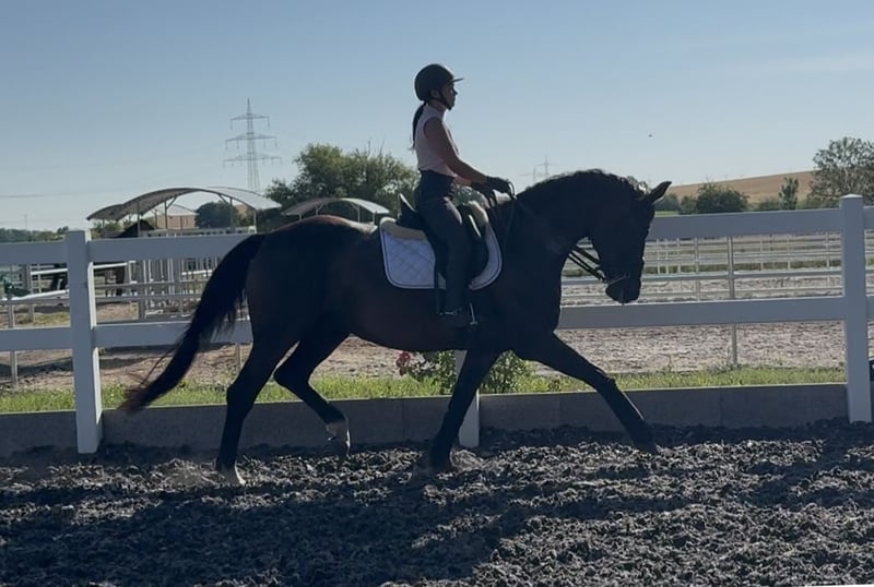 La signorina Croco discende per linea paterna dal famoso stallone Tannenhofs Fahrenheit, che ha gareggiato con successo fino al Grand Prix sotto la guida di Anja Plönzke. Fahrenheit Gt ha già prodotto diversi discendenti che sono stati anch'essi di successo a livello nazionale e internazionale fino al Grand Prix. Per linea materna, Croco proviene dallo stallone Rubinero, che ha avuto successo fino al PSG e ha generato discendenti fino al Grand Prix. La signorina Croco è una cavalla espressiva con molto coraggio e ambizione. Si distingue per la sua assoluta disponibilità al lavoro e per i suoi tre eccellenti andamenti di base. La bellissima cavalla è in nostro possesso fin da quando aveva sei mesi. A tre anni è stata montata con delicatezza e successivamente coperta, in modo da poter trascorrere un'estate al pascolo. In inverno, dopo lo svezzamento del puledro, Croco è stata nuovamente addestrata e montata. Nel 2022, la cavalla premiata Fräulein Croco ha dato alla luce un puledro maschio da Destello (di successo con Beatrice Buchwald) e due anni dopo ha sostenuto il suo esame di prestazione per fattrici. Attualmente, la cavalla si trova a livello di dressage M, sono già stati iniziati i cambi di galoppo e le pirouette di lavoro. Le traversine in trotto e galoppo le riescono già con sicurezza. Grazie al suo atteggiamento disponibile, a volte può essere un po' troppo motivata, ma d'altra parte non è mai pigra e può essere adatta per un giovane cavaliere ben preparato. *** Adatta per giovani cavalieri o cavalieri junior *** Una cavalla con molto fascino e cuore, che possiede una certa resistenza per lo sport e la riproduzione.
