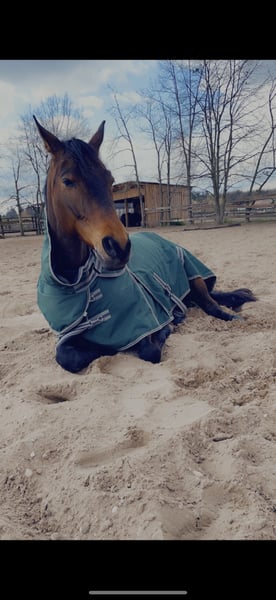 Zum Verkauf steht ein 10 jähriger und 168cm großer Hannoveraner Wallach. (Herbstkönig / Fürst Heinrich) 2023 wurde der Zufallsbefund, Engstände in der Wirbelsäule (Kissing Spines) diagnostiziert - Bilder vorhanden - uneingeschränkt reitbar. Herzbube, liebevoll Bubi genannt, ist seit 7 Jahren in meinem Besitz und wurde 2018, 3 Jährig von mir bei einem Händler auf Kommission vom Züchter (Schweiz) gekauft. Er ist mit viel Liebe zum absoluten Freizeit - Allrounder ausgebildet worden. (Dressur/ Springen/ Gelände/ Bodenarbeit - von allem ein bisschen was zum Spaß haben aber sportlich nicht weiter gefördert) Drauf setzten, losreiten, Spaß haben! Bubi bringt sehr raumgreifende und schwungvolle Bewegungen mit und hat dabei immer einen natürlichen Vorwärtsdrang. Zeigt hierbei keinerlei Unarten und ist immer klar und ruhig im Kopf. Besonders gerne ist er im Busch und im Gelände unterwegs. Egal, ob alleine oder in der Gruppe. Hier liebt er es einfach nur vorwärts zu galoppieren und die Umgebung zu genießen. Auch wenn er mit Go ausgestattet ist, ist er jederzeit kontrollierbar, regulierbar und zu jederzeit händelbar. Er ist demnach auch „Schussfest“, kennt den Straßenverkehr und alle möglichen äußeren Einflüssen und bleibt dabei ein absolutes Verlasspferd. Geländesprünge kennt er auch und nimmt sie selbstverständlich und locker mit. (Wurde nie weiter gefördert, kennt aber einzelne Geländesprünge auf Reitwegen) Ansonsten zeigt er sich bei der täglichen Arbeit stets motiviert und möchte seinem Reiter gefallen. Gibt hier seinen Reiter immer ein sicheres und tolles Reitgefühl und ist einfach ein absoluter Charmeur. Egal, ob bei täglichen Dressurarbeit, Gymnastiksprünge, kleine Parcours, einer Reitpause mit Doppellonge oder super entspannte Spaziergänge .. Durch seinen Schwung und seinen Befund würde ich ihn dennoch nicht als reines Anfängerpferd beschreiben, da er zu jederzeit seinen lockeren und ausbalancierten Reiter zu Schätzen weiß. (Wird etwas klemmig, bei nicht ausbalancierten Reitern oder bei zu starker Reiterhand) Auch auf fremden Plätzen fühlt er sich wie zu Hause. - kleinere Turniererfahrungen oder auswärts Lehrgänge (A Niveau) tadellos gemeistert. Auch ist Bubi Schmied- und Verladefromm und auch beim Tierarzt immer artig. Ich wünsche mir für Bubi ein zu Hause in dem er der Mittelpunkt ist und einfach den Chameur raushängen lassen darf und freizeitmäßig weiter gearbeitet und gefördert wird. Mit täglichem Weide - und Winterkoppel Auslauf in Gruppe. Momentan steht er ein einem Aktivstall in einer Gruppengröße von 25 Pferden- gemischte Herde - und liebt es! Kennt allerdings auch Offenstall in kleinerer Gruppe, sowieso Paddockboxen. Bubi ist absolut kein Notverkauf und wird ausschließlich in ein 5Sterne - zu Hause abgegeben. Erstanfrage gerne über WhatsApp.