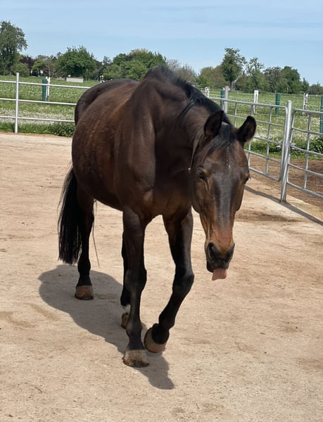 For sale is a 10-year-old, 168 cm tall Hanoverian gelding. (Herbstkönig / Fürst Heinrich) In 2023, a random finding of tightness in the spine (Kissing Spines) was diagnosed - images available - he is fully rideable. Herzbube, affectionately called Bubi, has been in my possession for 7 years and was purchased by me in 2018 as a 3-year-old from a dealer on commission from the breeder (Switzerland). He has been trained with a lot of love to be the absolute leisure all-rounder. (Dressage / Jumping / Trail / Groundwork - a bit of everything for fun but not further promoted for sport) Just get on, ride off, and have fun! Bubi has very expansive and energetic movements and always has a natural forward tendency. He shows no vices and is always clear-headed and calm. He particularly enjoys going out in the woods and on trails, whether alone or in a group. Here, he loves to gallop forward and enjoy the surroundings. Even though he has a lot of go, he is always controllable, adjustable, and manageable at any time. He is therefore also "gun-safe," knows traffic, and all possible external influences while remaining an absolute reliable horse. He is familiar with trail jumps and takes them in stride and with ease. (He has never been further promoted but knows individual trail jumps on riding paths.) Otherwise, he is always motivated in daily work and wants to please his rider. He always gives his rider a safe and great riding feeling and is simply an absolute charmer. Whether in daily dressage work, gymnastic jumps, small courses, a riding break with double lunge, or super relaxed walks... Due to his energy and his condition, I would not describe him as a pure beginner's horse, as he appreciates a relaxed and balanced rider at all times. (He can become a bit stiff with unbalanced riders or too strong a hand.) Even in unfamiliar places, he feels at home - he has mastered smaller competition experiences and off-site training sessions (A level) flawlessly. Bubi is also farrier-friendly and loading-friendly and is always well-behaved at the vet. I wish for Bubi a home where he is the center of attention and can let his charm shine while being worked with and promoted in leisure activities. With daily pasture and winter paddock turnout in a group. Currently, he is in an active stable with a group size of 25 horses - mixed herd - and loves it! He is also familiar with open stables in smaller groups, as well as paddock boxes. Bubi is absolutely not a forced sale and will only be given to a 5-star home. Initial inquiries are welcome via WhatsApp.