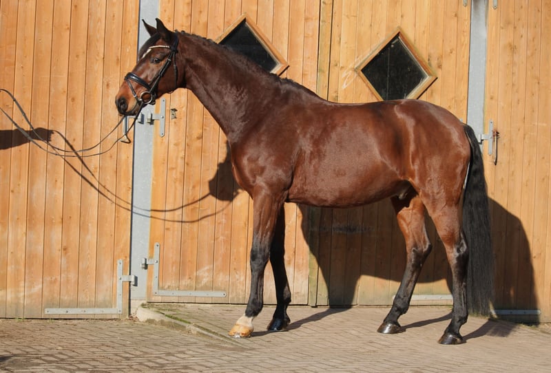 Finn ist ein leistungsorientierter Dressurwallach mit einem tollen Charakter. Mit seinenTop Grundgangarten und seinener immer motivierten Einstellung stehen ihm auch für höhere Aufgaben alle Türen offen. Guter Tüv vorhanden