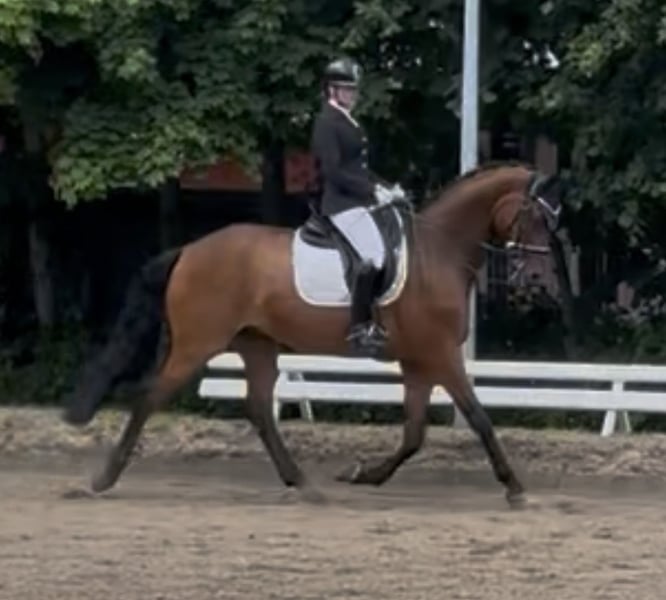 Finn - 10-jarige Hannoveraanse ruin, 1,70 m, opgeleid tot L-klasse en succesvol in de ring. Een gevoelig, intelligent paard met een groot hart. Finn is zeer braaf in de omgang, laad- en hoefsmidvriendelijk, geschikt voor hartgebruik en zeer mensgericht. Ook na rustperiodes blijft hij kalm en betrouwbaar – een echt zielsgenoot. Vanwege een chronische, terugkerende desmopathie van de beiderzijdse achterbenen wordt hij afgestaan als recreatiepartner. Met goed management en matige beweging is rijden in de A- tot L-klasse en rustig buitenrijden mogelijk, maar deelname aan wedstrijden of springen is niet meer geschikt. Een liefdevol thuis waarin zijn welzijn voorop staat, is gezocht. Voorrang gaat altijd boven prijs. Graag licht ik de aandoening en het management in een persoonlijk gesprek nader toe.