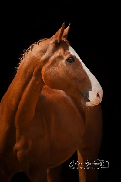 Cheval au galop exceptionnel, prêt à concourir en St Georges. Il cherche pour la vie son cavalier, qui sera de préférence d'un naturel calme et posé rassurant, qui aime développer une relation fusionnelle avec son cheval, à la main légère. Doux, introverti, le cheval convient également pour les épreuves Junior en international. Vetcheck réalisé en 2025