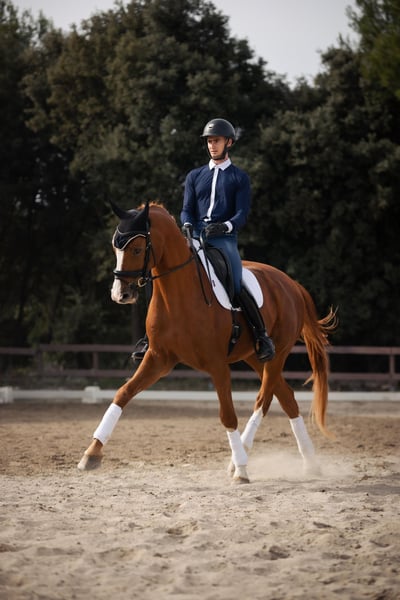 Paard in uitzonderlijke galop, klaar om deel te nemen aan St. Georges-wedstrijden. Hij zoekt zijn levenslange ruiter, bij voorkeur iemand met een kalme en rustige aard, die een geruststellende aanwezigheid biedt en graag een hechte band met zijn paard ontwikkelt, met lichte hand. Zacht, introvert, het paard is ook geschikt voor internationale Junior-proeven. Vetscheck uitgevoerd in 2025.