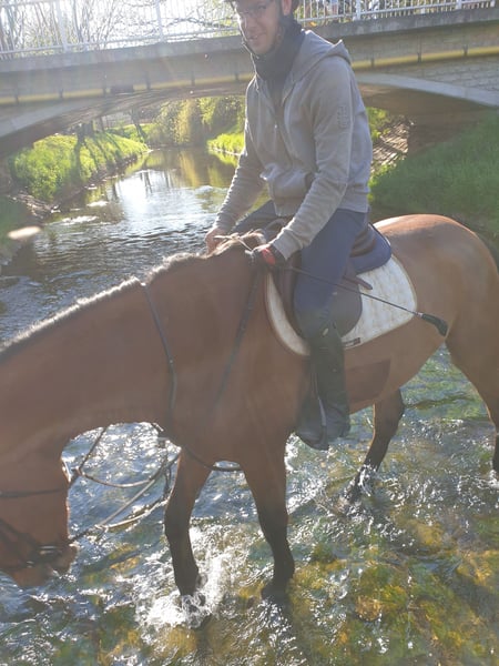 Se pone a la venta, debido a una reducción de la plantilla, nuestro querido Paul. Es un caballo de gran tamaño, un caballo de doma, que a pesar de su altura es muy agradable de montar y ágil. Cada día, le brinda alegría a su jinete y siempre quiere hacer las cosas bien. Para nosotros, es un caballo familiar y cualquiera de nosotros puede montarlo sin problema. Está bien entrenado en doma clásica, domina todos los movimientos laterales y también se puede montar muy bien en bocado de doble rienda. Lo hace todo con gusto y es un caballo maravilloso para aprender. Incluso los principiantes le han enseñado a trotar suavemente en la cuerda. Lo que más disfruta es saltar y siempre está dispuesto para su jinete. Aquí, posee mucha calidad y talento. También los obstáculos en campo abierto no son un problema para él. Quien busque un compañero con actitud deportiva, ha llegado al lugar correcto. También podemos imaginárnoslo muy bien como caballo de volteo, porque tiene un trote muy equilibrado y recogido, y sobre él hay mucho espacio para moverse. Para nosotros, es especialmente importante que reciba una tarea maravillosa y que sea amado y valorado. Lamentablemente, no siempre podemos quedarnos con todos.