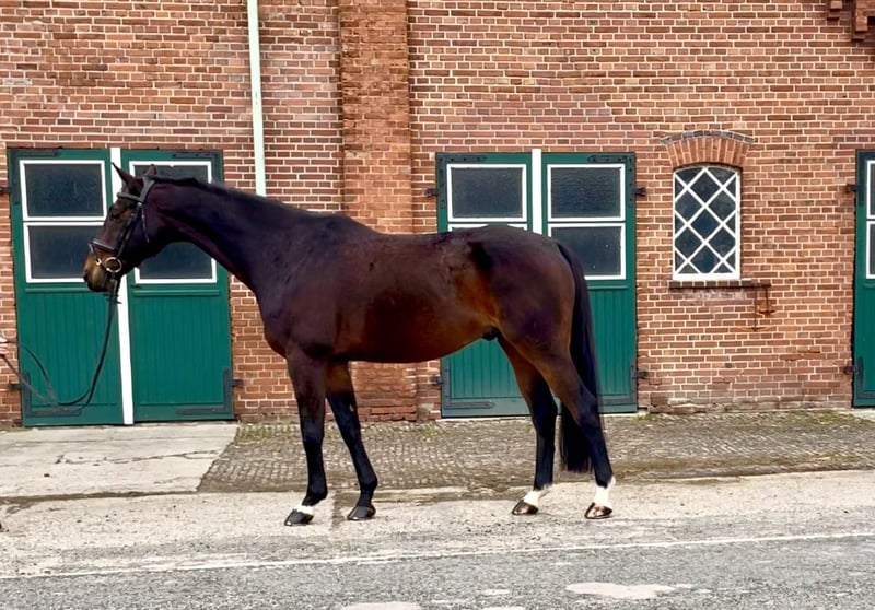 In vendita un castrone Hannoveriano nato nel 2012 (circa 168 cm al garrese, pedigree: Grey Top). Robie è molto affettuoso con le persone, coccolone e socievole. Finora ha vissuto in un branco, dimostrando di essere molto compatibile socialmente. A Robie piace molto lavorare a terra e fare lunghe passeggiate al passo, e anche sotto la sella si entusiasma per il lavoro con le barriere e i cavaletti. Durante le uscite a cavallo, finora è stato impegnato principalmente come svago, a causa di mancanza di tempo. Robie trasmette rapidamente sicurezza e si lascia facilmente mettere in marcia. È un cavallo attento, che in situazioni sconosciute mantiene la calma e si orienta molto bene al suo cavaliere. A causa di un problema al collo, che rende difficile mantenere la posizione corretta, non è adatto a un cavaliere da competizione ambizioso. Attualmente viene montato tre volte a settimana da una ragazza di 15 anni. Cerchiamo una famiglia amorevole che possa accoglierlo come compagno per il tempo libero.