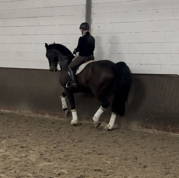 Dieser wunderschöne Wallach sucht seinen neuen Wirkungskreis. Mit bestem Blut (Fidertanz x De Niro) und stetiger Arbeitsbereitschaft will er alles richtig machen. Er zeichnet sich besonders für seinen lieben und ehrlichen Charakter aus. Zudem bringt er Solide Grundgangarten mit. Schmiede und Verladefromm. Ca. 1,85 m groß Aktueller Tüv ohne Befunde vorhanden 5 jährig Qualifikation zum Bundeschampionat bis hin zum kleinen Finale M Dressur sicher und vorgestellt S Dressur im Training Er ist ein absolutes Verlasspferd. Video kann auf Anfrage verschickt werden