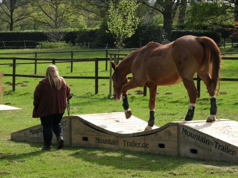 Da wir ca Mitte 2026 umziehen werden, bin ich auf der Suche nach einer Pflegebeteiligung zur Unterstützung für die Übergangszeit. Selfi hat schon viel erlebt und benötigt auf Grund mehrerer chronischer Erkrankungen täglich Bewegung, doch durch den anstehenden Umzug, meinen stressigen Beruf und die Tatsache, dass seine bisherige Pflegebeteiligung nur noch unregelmäßig kommt, schaffe ich das aktuell nicht mehr alleine. Bei entsprechenden Kenntnissen und wenn die Chemie perfekt stimmt, bin ich auch bereit, eine kleine Aufwandsentschädigung anzubieten. Standort: Aachen Köpfchen (gut mit öffentlichen Verkehrsmitteln erreichbar, ca. 10 Min. vom Hbf Richtung Belgien) --- Was ich mir wünsche: - ab 16 Jahren - mindestens 2 Tage pro Woche, gerne mehr - absolute Zuverlässigkeit! - Pferdeerfahrung, die sich nicht nur auf eine Ferienzeit als Kind beschränkt - Erfahrung in der Bodenarbeit - Interesse an abwechslungsreicher, gesundheitsfördernder Beschäftigung - Geduldiger, fairer und klarer Umgang mit dem Partner Pferd --- Was dich erwartet: - Kein regelmäßiger Stalldienst, höchstens mal nach Absprache Fliegenmasken ausziehen oder Heunetze aufhängen - Keine Kostenbeteiligung - Privater, artgerechter Offenstall mit Reithalle, Licht, Strom etc. - Viel Equipment für abwechslungsreiche Arbeit - Ausgeglichene Pferde mit viel Platz, Futter und Beschäftigung - Kleine, hilfsbereite Stallgemeinschaft mit nettem Miteinander - Traumhaftes Gelände direkt ab Hof - Einarbeitung & Begleitung zu Beginn, danach viel Raum für selbstständiges Arbeiten - Pflegebeteiligung auf Zeit, ideal für jemanden, der sich ausprobieren, übergangsweise engagieren möchte oder sich vielleicht grade eine Auszeit nimmt --- Selfi hat mehrere chronische Baustellen und braucht daher am besten täglich Bewegung vom Boden aus. Spaziergänge, Equikinetic, Stangenarbeit, Freispringen, Freiarbeit, Zirkuslektionen, Gelassenheitstraining, Extreme Trail usw. Mit ihm ist quasi alles möglich und er ist bei allem am Start. Wenn du sein Vertrauen gewinnst, geht er mit dir durch dick und dünn. Er ist motiviert, hört gut auf Körpersprache und Stimme, hat ein angenehmes Go und ist einfach eine coole Socke, die für jeden Quatsch zu haben ist. Wichtig ist: klare, ruhige Kommunikation. Selfi ist sensibel und braucht einen Partner, der weiß, was er will und das auch unmissverständlich vermitteln kann. Unsichere oder hektische Menschen verunsichern ihn. Gleichzeitig kommuniziert Selfi selbst sehr viel. Du solltest daher idealerweise bereits mit der Körpersprache und Mimik von Pferden vertraut sein, diese lesen und angemessen darauf reagieren können. ‼️ Wichtig: Selfi ist nicht mehr reitbar, auch nicht "nur im Schritt" oder "für leichte Reiter". Er ist außerdem kein Kinderpferd. --- Wenn du Interesse hast, schreib mir gerne ein paar Zeilen über dich. Dann schauen wir gemeinsam, ob es passen könnte. Wir freuen uns sehr auf deine Nachricht!